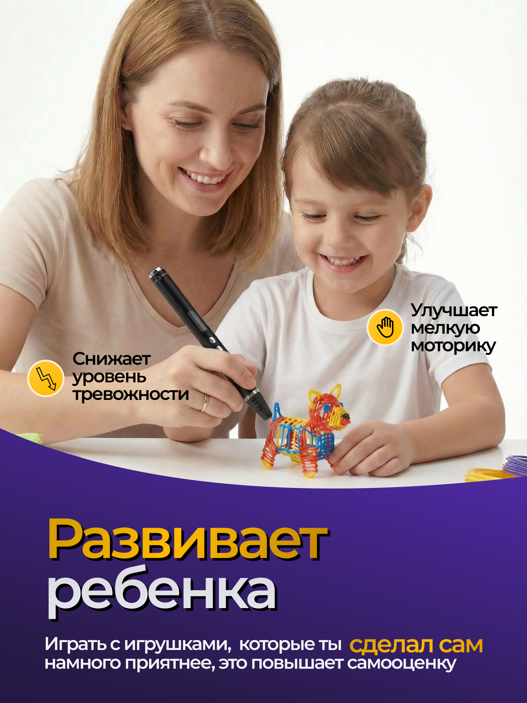 3Д ручки идеально подходят для развития творческих способностей, мышления и моторики.