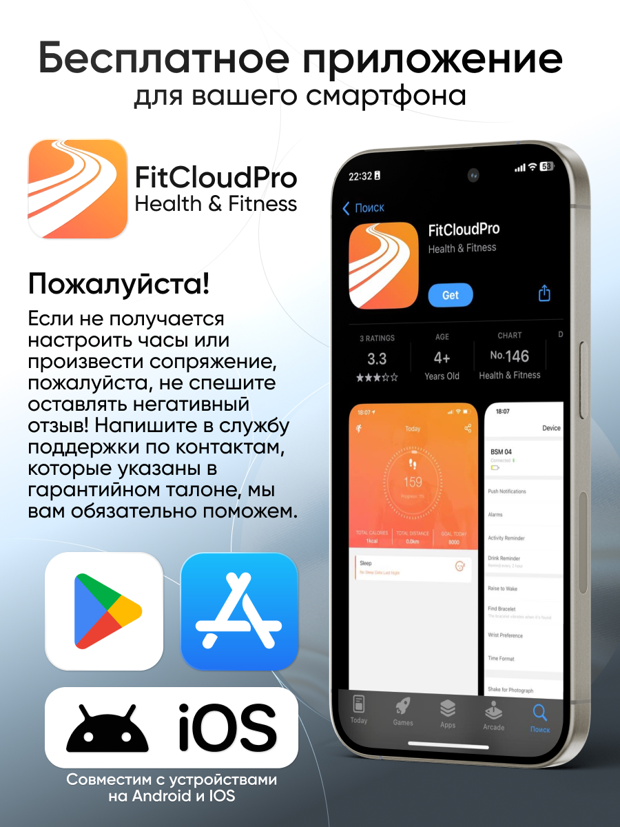 Совместимость: Android 5.0 или выше , iOS 10.0 или выше с поддержкой Bluetooth 5.