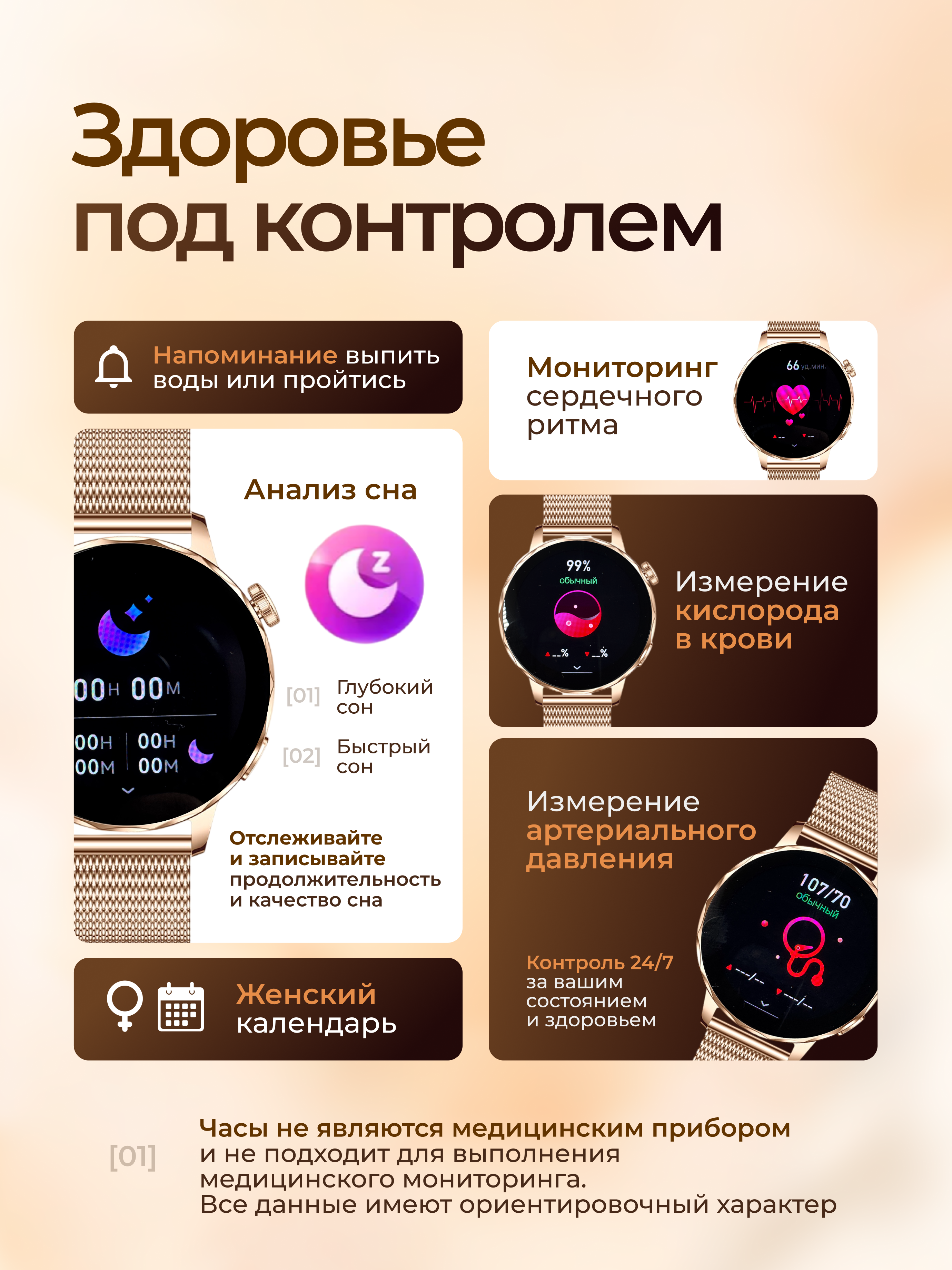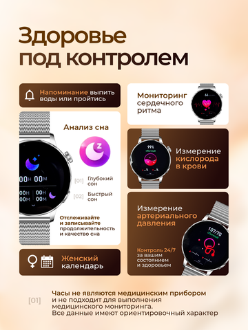 Оцените максимальный набор заботливых функций для вашего Android или Iphone смартфона, необходимых современной девушке и женщине. Круглосуточный мониторинг здоровья обеспечивается датчиками сердечного ритма и кислорода в крови. Скорректировать режим отдыха поможет комплексный анализ сна. Женский календарь гаджета отследит фазы цикла, чтобы вы планировали дела с учетом состояния организма.
